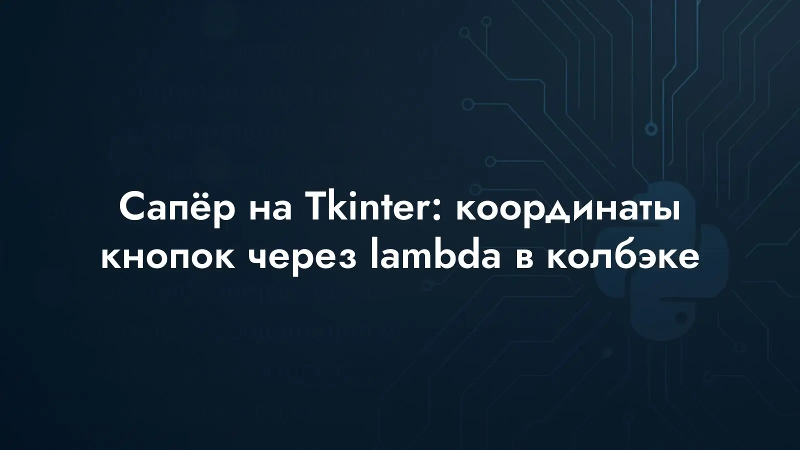 Делайте колбэки самодостаточными. Генерируя кнопки в цикле, фиксируйте переменные цикла прямо в command. Аргументы по умолчанию в лямбде — краткий и надёжный способ, который хорошо масштабируется по мере роста поля или усложнения логики. С этой небольшой правкой каждый клик несёт свой контекст, и остальная логика сапёра может сосредоточиться на геймплее, а не на угадывании, какую ячейку нажали.