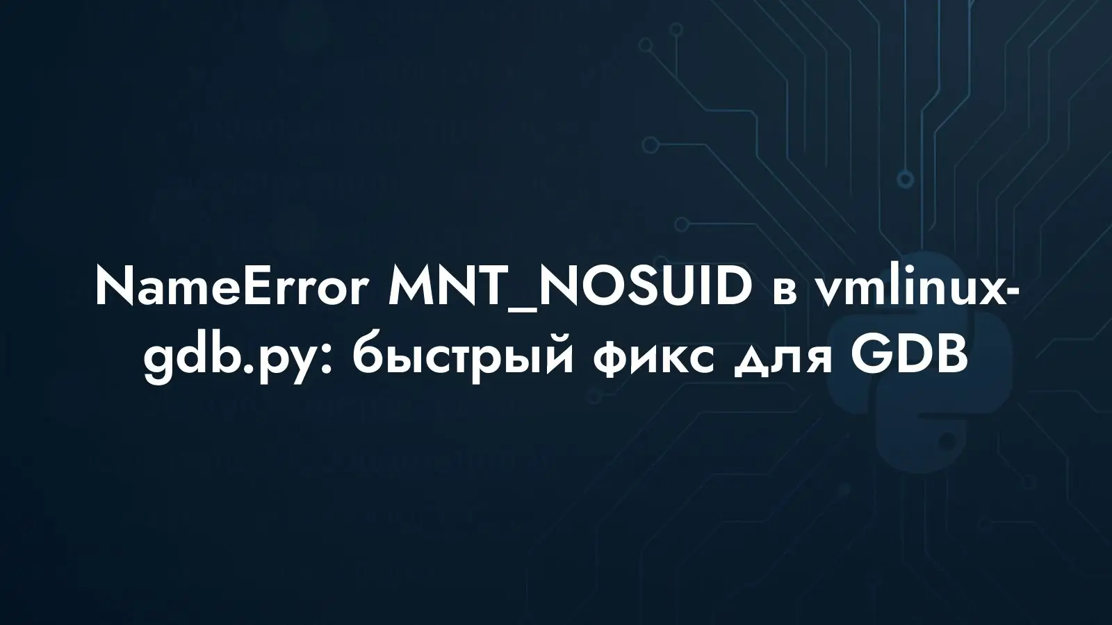 Разбираем ошибку NameError MNT_NOSUID при source vmlinux-gdb.py в GDB: почему не баг Python, как применить патч из LKML и вернуть удобства отладки ядра Linux.