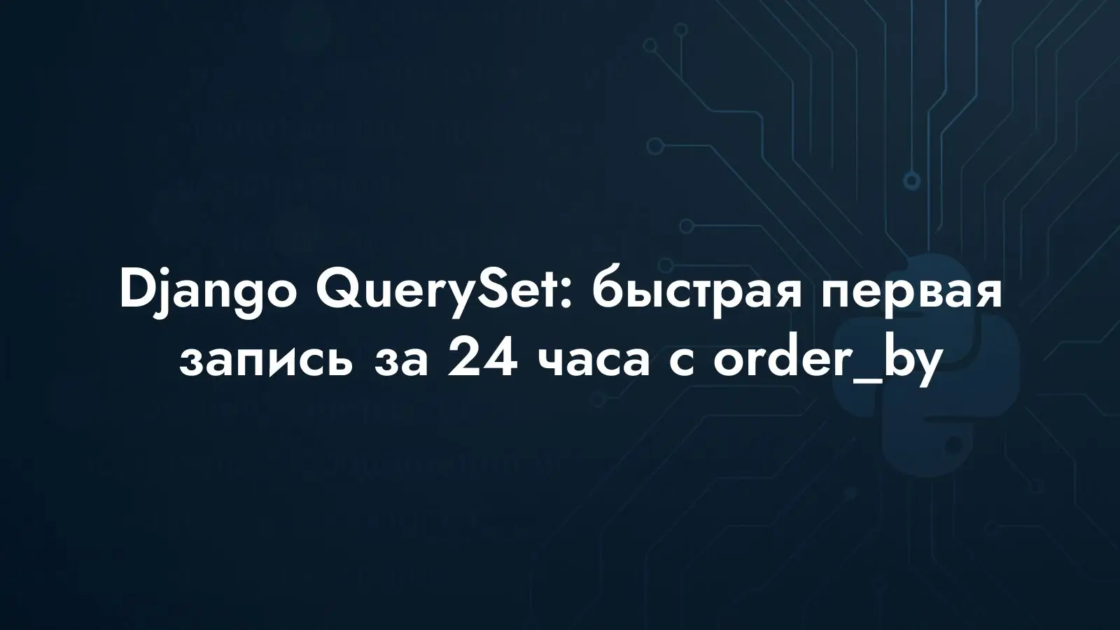 .first() на Django QuerySet тормозит при поиске первой записи за 24 часа. Покажем, как ускорить запрос с явным order_by по time_epoch и индексом.
