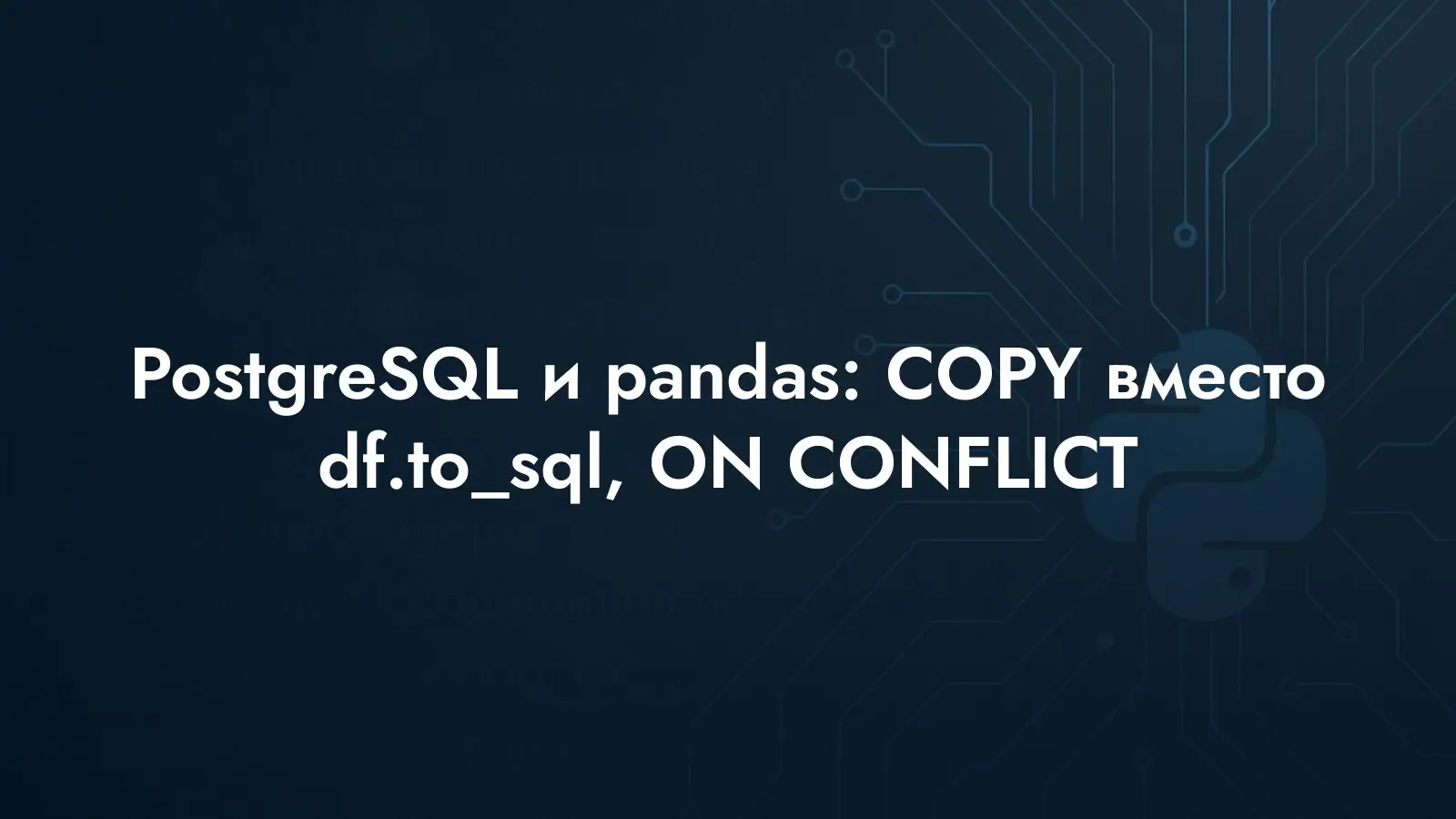 Почему df.to_sql с chunksize тормозит и как ускорить импорт pandas DataFrame в PostgreSQL: COPY FROM, staging-таблица, INSERT ON CONFLICT, индексы — быстрее.