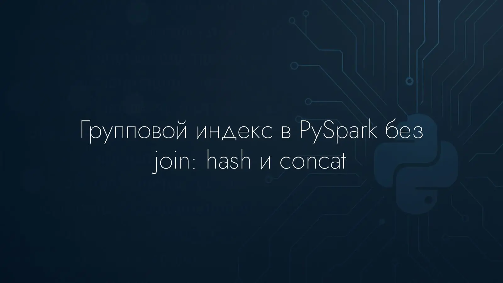 Чтобы присвоить групповой индекс в PySpark на больших объёмах, выводите его из группирующих столбцов, а не стройте справочник с последующим join. Используйте hash(...) — когда нужен компактный целочисленный индекс, считаемый «на месте». Выбирайте concat_ws(...) — если важна читаемость и допустим строковый объём. Оба подхода сохраняют простую логику и опираются на нативные возможности Spark.