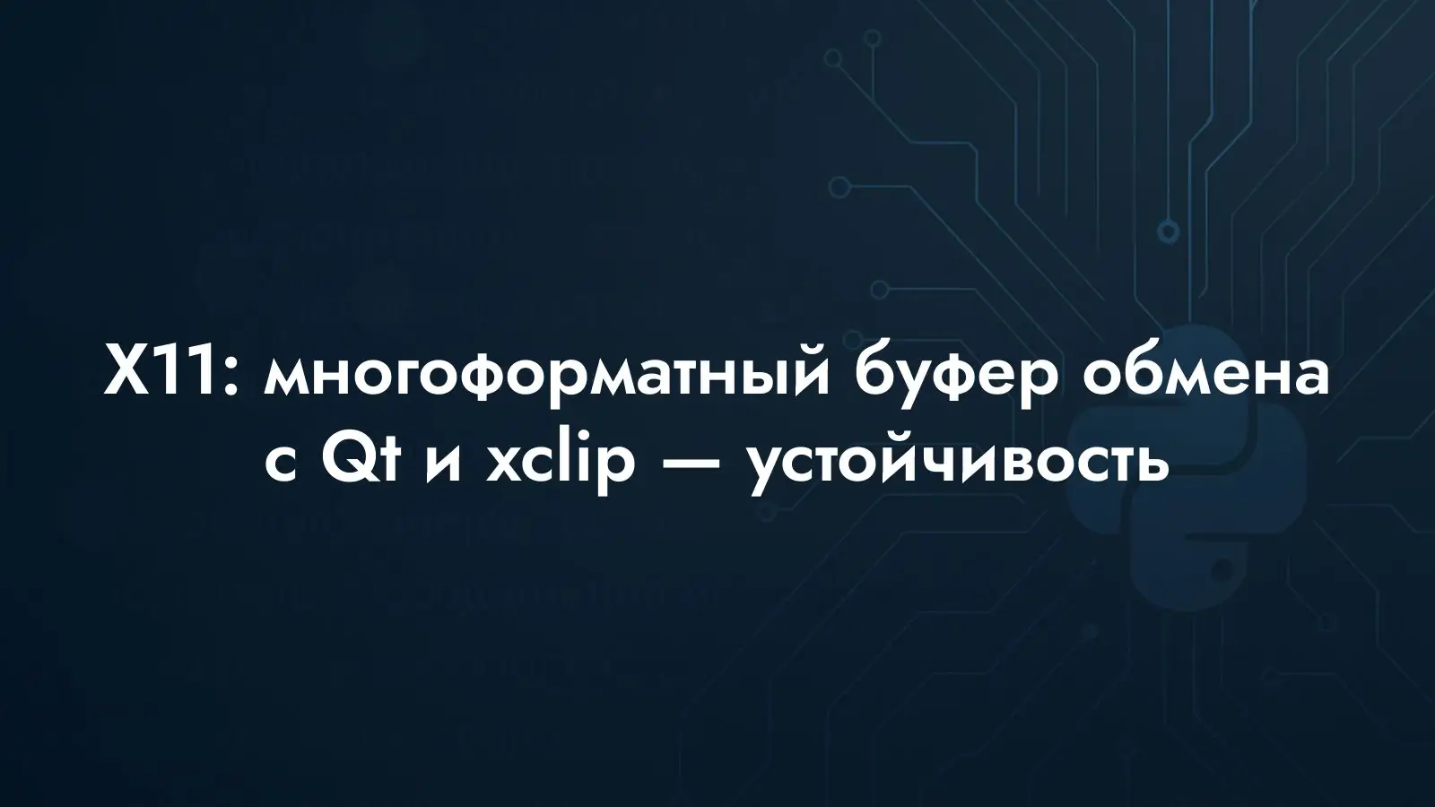 Относитесь к буферу обмена X11 как к «живому контракту» между одним производителем и множеством потребителей. Используйте одну программу, которая объявляет все форматы сразу, вместо цепочки отдельных записей. Если вы применяете Qt, достаточно установить «родное» изображение — Qt предложит широкий набор MIME-целей и выполнит конвертацию по запросу. Держите процесс запущенным и завершайте его, когда потеряете владение, или делегируйте постоянство менеджеру буфера, если он уже работает в системе.