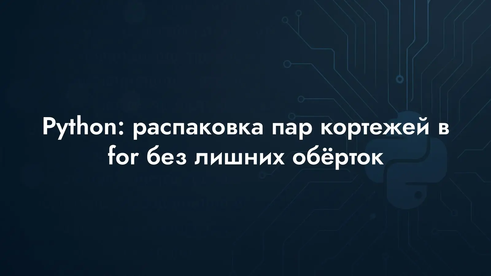 Опора на стандартную распаковку делает код компактным и идиоматичным. Она исключает лишние «прослойки» и читается ровно так, как задумано: на каждой итерации приходит пара, а её части получают понятные, отдельные имена. Если кажется, что нужен ещё один оператор, сначала проверьте, не решает ли Python это из коробки.