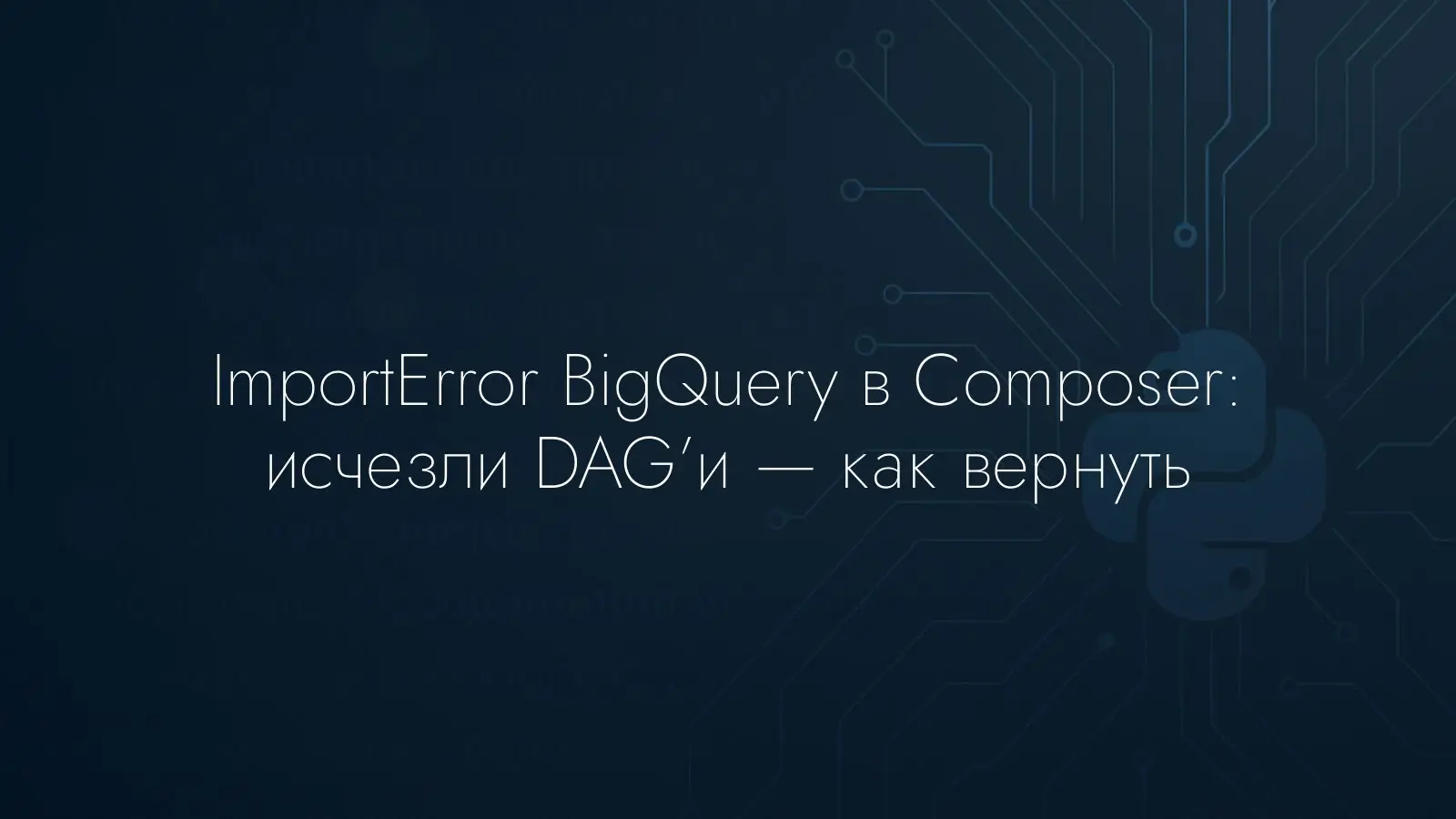 Обновления Airflow в Google Cloud Composer иногда проявляются неочевидно. Только что вы устранили ImportError — и вот уже весь набор DAG'ов будто исчез из интерфейса. В этом материале разбираем конкретный случай с операторами BigQuery: почему ImportError может обернуться «пропажей» DAG'ов и как аккуратно устранить проблему без побочных эффектов.