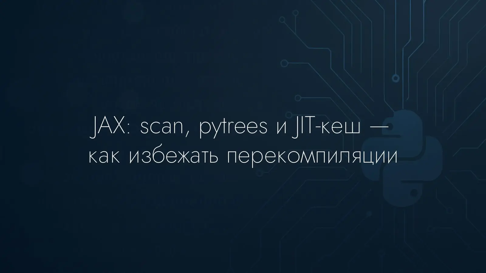 Разбираем, что запускает перекомпиляцию JAX JIT: как pytrees влияют на ключ кеша, scan и лямбда‑замыканий, и как держать статическое и динамическое раздельно.