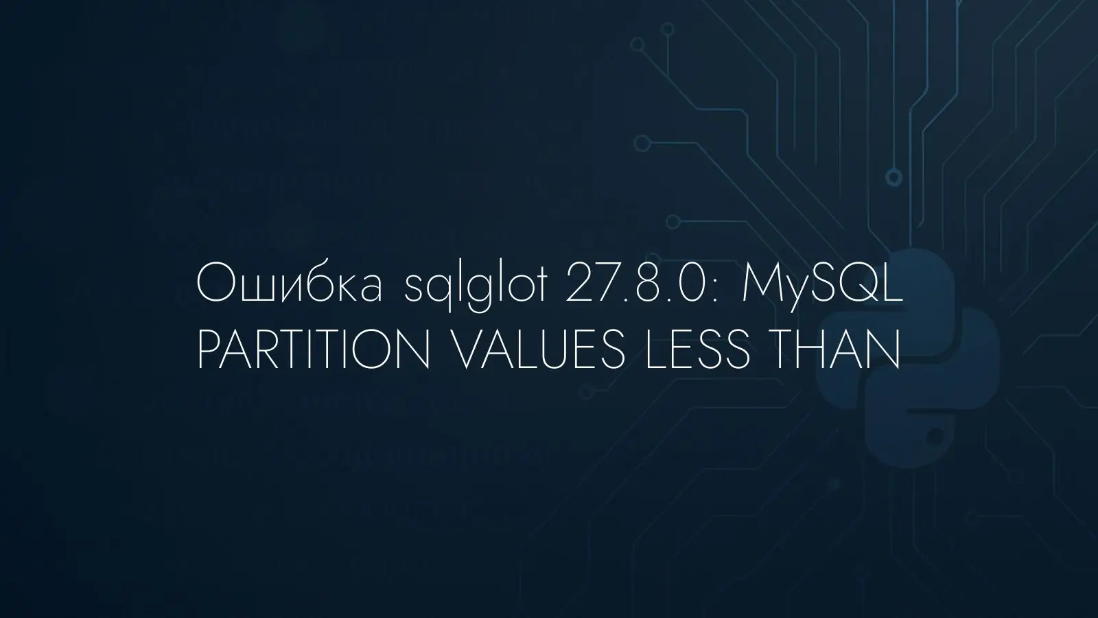 Разбор MySQL DDL с секционированием таблиц может поставить в тупик универсальные SQL‑парсеры. Если ваш скрипт использует PARTITION BY RANGE с VALUES LESS THAN, sqlglot 27.8.0 выдаст ошибку разбора, даже если DDL корректен для MySQL.