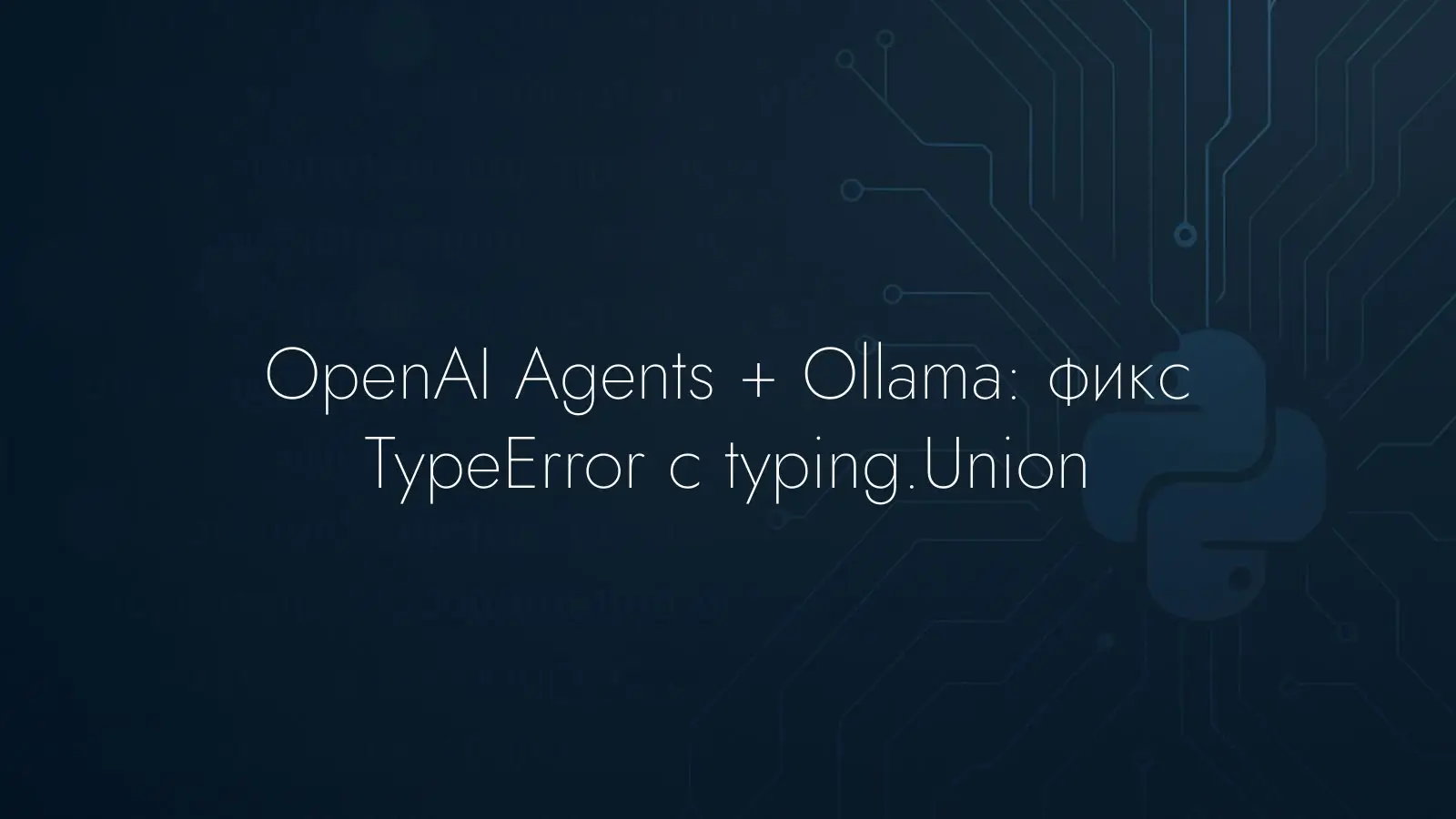 Вызов функций в OpenAI Agents SDK, подключённом к бэкенду Ollama, может неожиданно падать с TypeError из typing.Union. Если агент рушится на простом вызове инструмента, а трассировка завершается сообщением «TypeError: Cannot instantiate typing.Union», скорее всего, вы столкнулись с несовместимостью между кодом агентов и актуальной версией пакета openai.