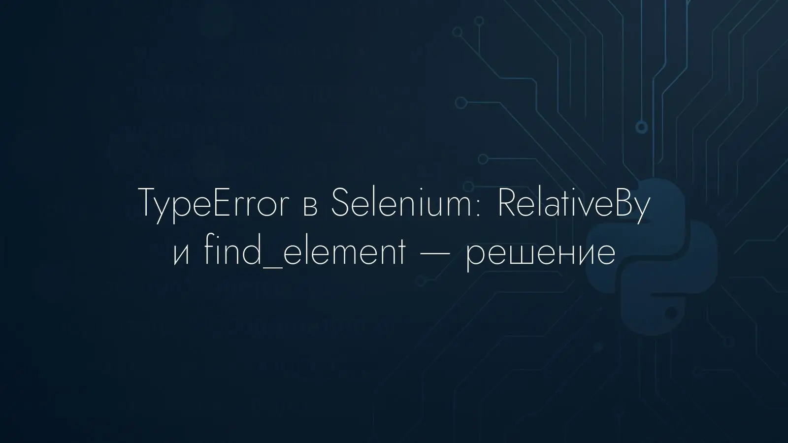 Столкновение с TypeError при работе с относительными локаторами Selenium может сбить с толку, особенно когда по сигнатуре метода кажется, что всё должно работать. Если при вызове find_element на WebElement вы видите исключение о том, что RelativeBy нельзя сериализовать в JSON, этот разбор показывает, почему так происходит и как это исправить, не меняя задуманную логику селектора.