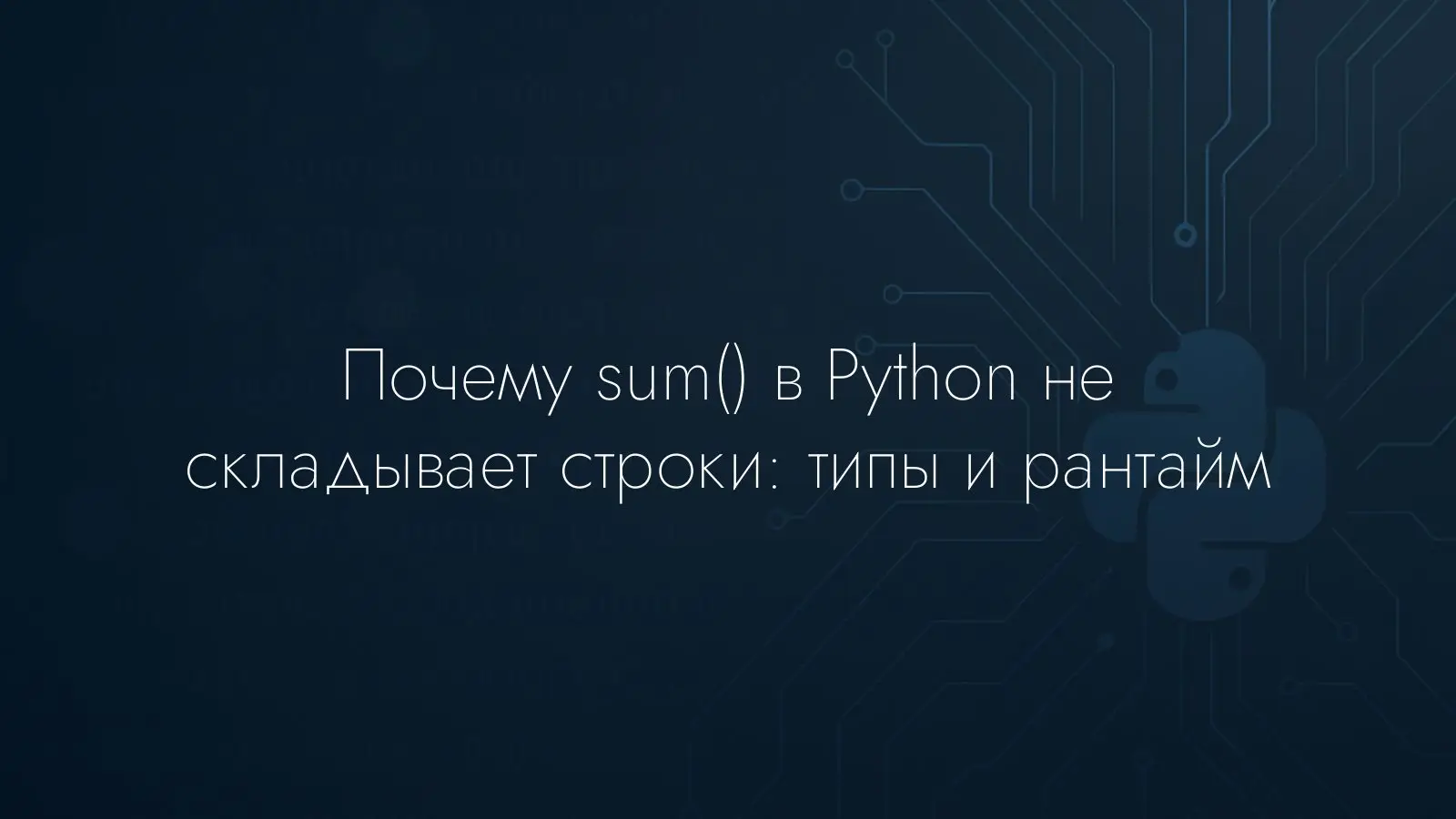 Когда начинаешь разбираться в sum() Python в IDE, легко наткнуться на загадочные типы вроде _Addable. Функция явно складывает числа и умеет объединять списки при заданном стартовом значении, но со строками работать отказывается, хотя у строк есть оператор +. Что на самом деле означает здесь «addable» и почему sum(['a', 'b'], '') падает во время выполнения?