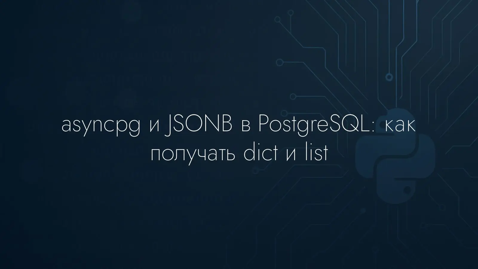 При работе с asyncpg и JSONB в PostgreSQL нередко оказывается, что вместо нативных объектов Python вы получаете обычные строки. Если запросы возвращают значения JSONB как текст, операции, рассчитывающие на dict и list, становятся неудобными, а предположения о типах мгновенно ломаются. Ниже — краткое объяснение проблемы и минимальное, надежное решение.