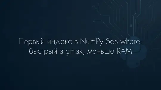 Первый индекс в NumPy без where: быстрый argmax, меньше RAM